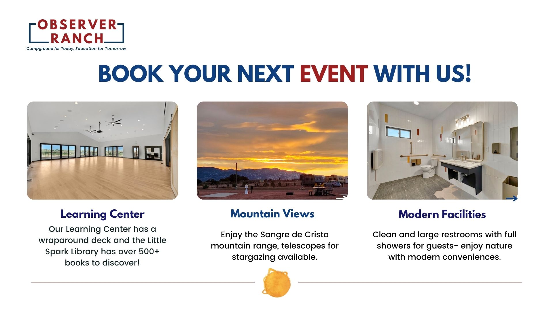Now booking 2026 events- check to see if your dates are available at Observer Ranch!