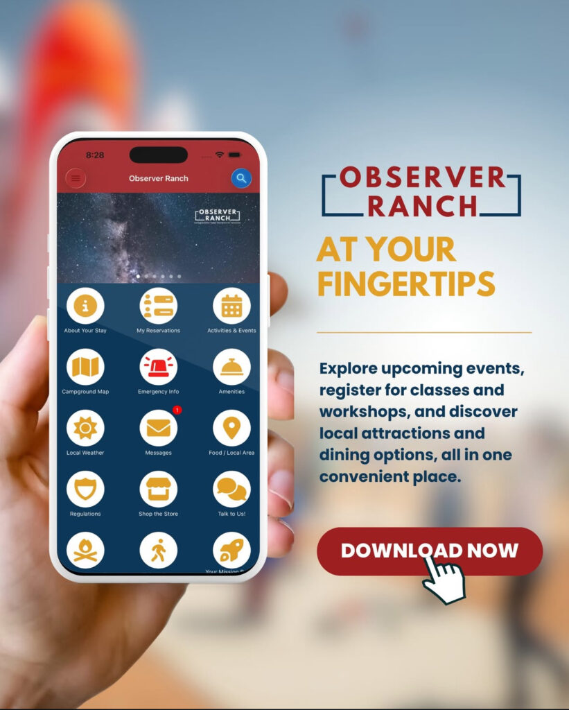 Our Rocketeer Liftoff Package covers 20 guests, inclusive and includes a model rocket launch! Guests also receive 10% off their camping reservation.